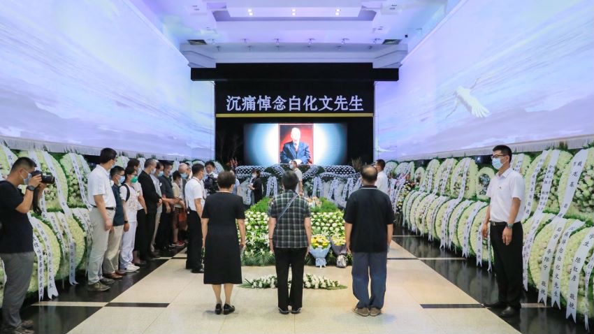 上午十时三十分,哀乐低回、哀思无限,一排排的花圈和挽联,寄托着对先生的深切怀念。人们怀着无比沉痛的心情,向白先生作最后告别。