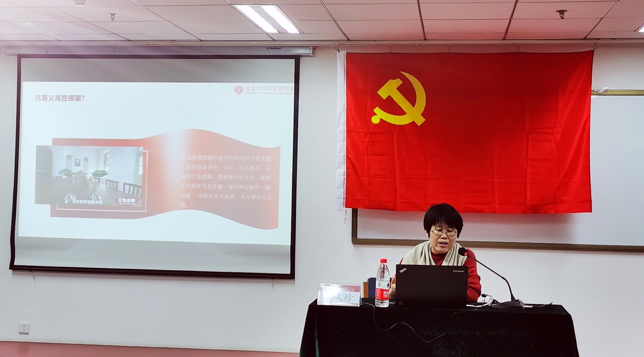11月26日下午,信息管理系在方李邦琴楼B101报告厅举行了党委书记讲党课活动。信息管理系党委书记、系主任张久珍教授为北京大学第34期党的知识培训班的57名信息管理系学员讲授了题为“初心在这里——从亢慕义斋说起”的主题党课。活动由信息管理系本科生第一党支部书记、系学工办副主任张凯老师主持。