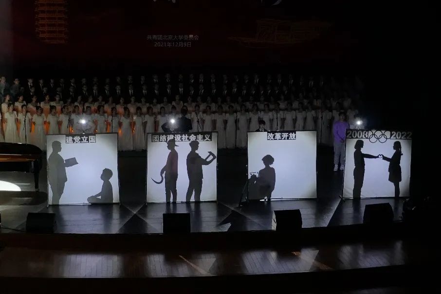 最终展演,每个人都用尽全力,以最好的一面迎接正式的演出。女生声部的婉转悠扬,男生声部的高亢激昂,交织汇成对祖国发展的歌颂,唱出万家灯火的繁荣。最终,我们呈现出了最完美的效果,在百周年纪念讲堂留下了属于自己的青春印记!