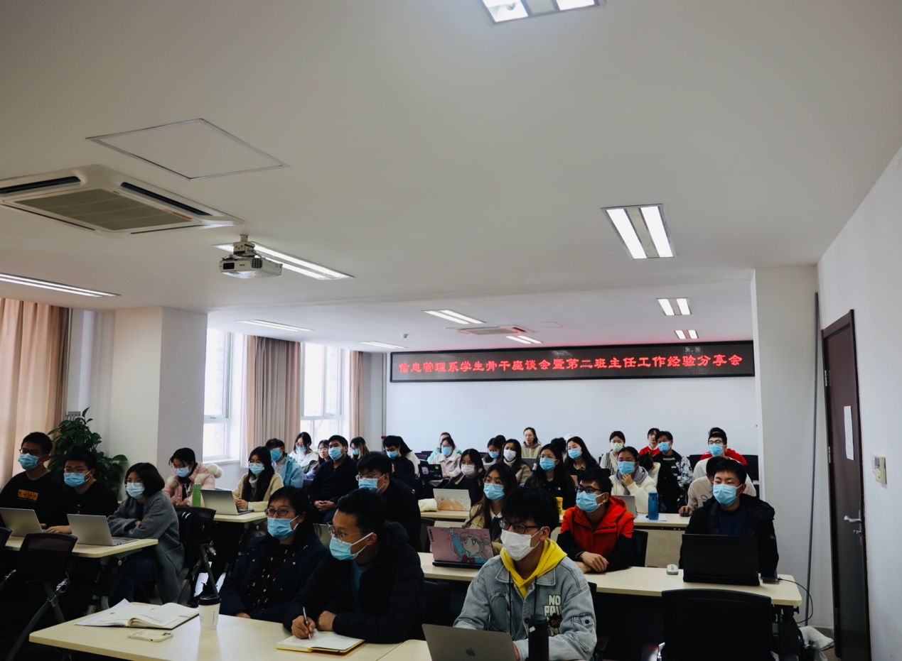 为进一步加强信息管理系学生骨干队伍建设,帮助学生骨干赋能,统筹安排好疫情防控、党团日活动、就业资助等重点学生工作,2022年4月1日下午,信息管理系举办学生骨干座谈会暨第二班主任工作经验分享会。党办校办副主任、信息管理系2019级本科生班第二班主任曹冠英,信息管理系党委副书记张妙妙,团委书记李派,学工办张凯出席会议,学生党支部书记、带班辅导员、本硕博各班班长、团支书和团委学生会负责同学共计40余人参加了此次会议。会议由张凯主持。