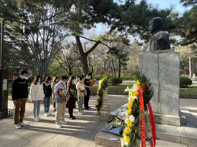 党员同志们首先来到李大钊同志塑像前,党支部书记张凯分享了李大钊同志的生平事迹。李大钊同志是中国最早的马克思主义者和共产主义者,是中国共产党的主要创始人之一。他对中国人民的解放事业,对马克思主义的信仰和无产阶级的革命前途无限忠诚。他为在我国开创和发展共产主义运动的大无畏的献身精神,永远是一切革命者的光辉典范。1927年4月6日,李大钊同志在北京被捕入狱。他受尽各种严刑拷问,始终坚守信仰、初心不改、坚贞不屈、大义凛然。同年4月28日,李大钊同志惨遭反动军阀绞杀,牺牲时年仅38岁。随后党员同志们像李大钊同志塑像鞠躬并一次献花。